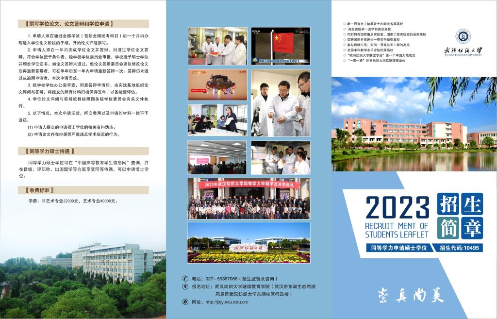 武汉纺织大学2023年同等学力申请硕士学位招生简章