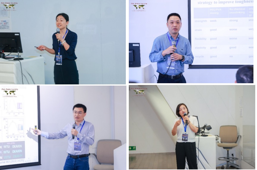 在“可持续纤维与纺织品”分会场上,国家地方联合工程实验室主任王金凤教授作了以《Body Odour Management Performance of Different Fibers and Blends》为题的主题报告;在“健康医疗与生物医学应用”分会场上,材料学院鲁振坦教授作了以《The Design of Fiber-based Bacterial Sensors》为题的主题报告;在“舒适性与防护用纤维”分会场上,生康学院刘清涛教授做了《Smart Thermoregulating Fabric: Passive Radiative Cooling with Comfortable Breathability》为题的主题报告;在“新型先进纤维材料”分会场上,材料学院王雯雯教授作了《Hollow Cholesteric Liquid Crystal Elastomer Fiber with Synergistically Enhanced Resilience and Mechanochromic Sensitivity》为题的主题报告。