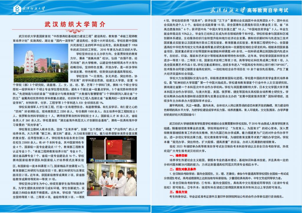 当前位置:首页 > 自学考试 > 武汉纺织大学2023年高等教育自学考试招生简章