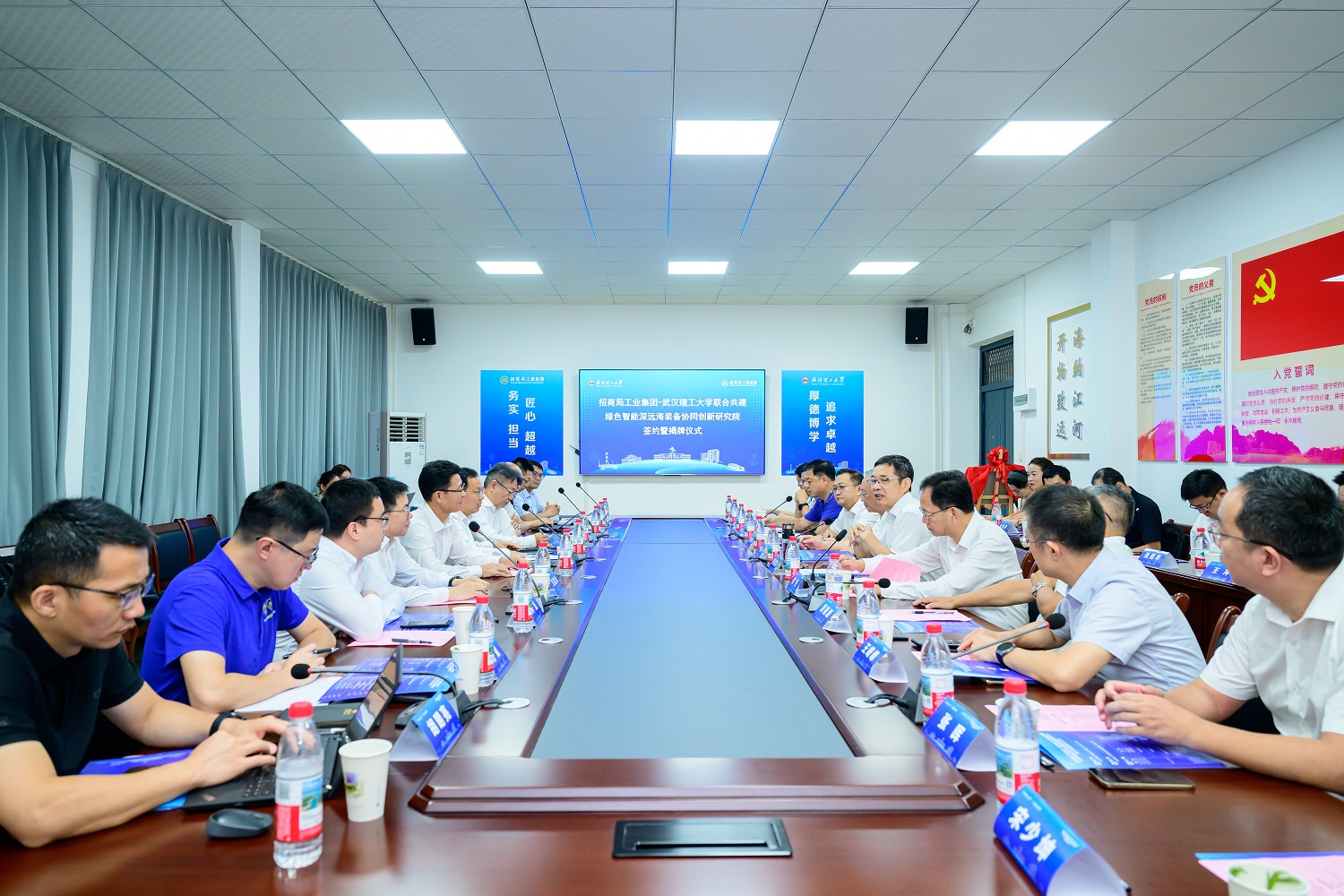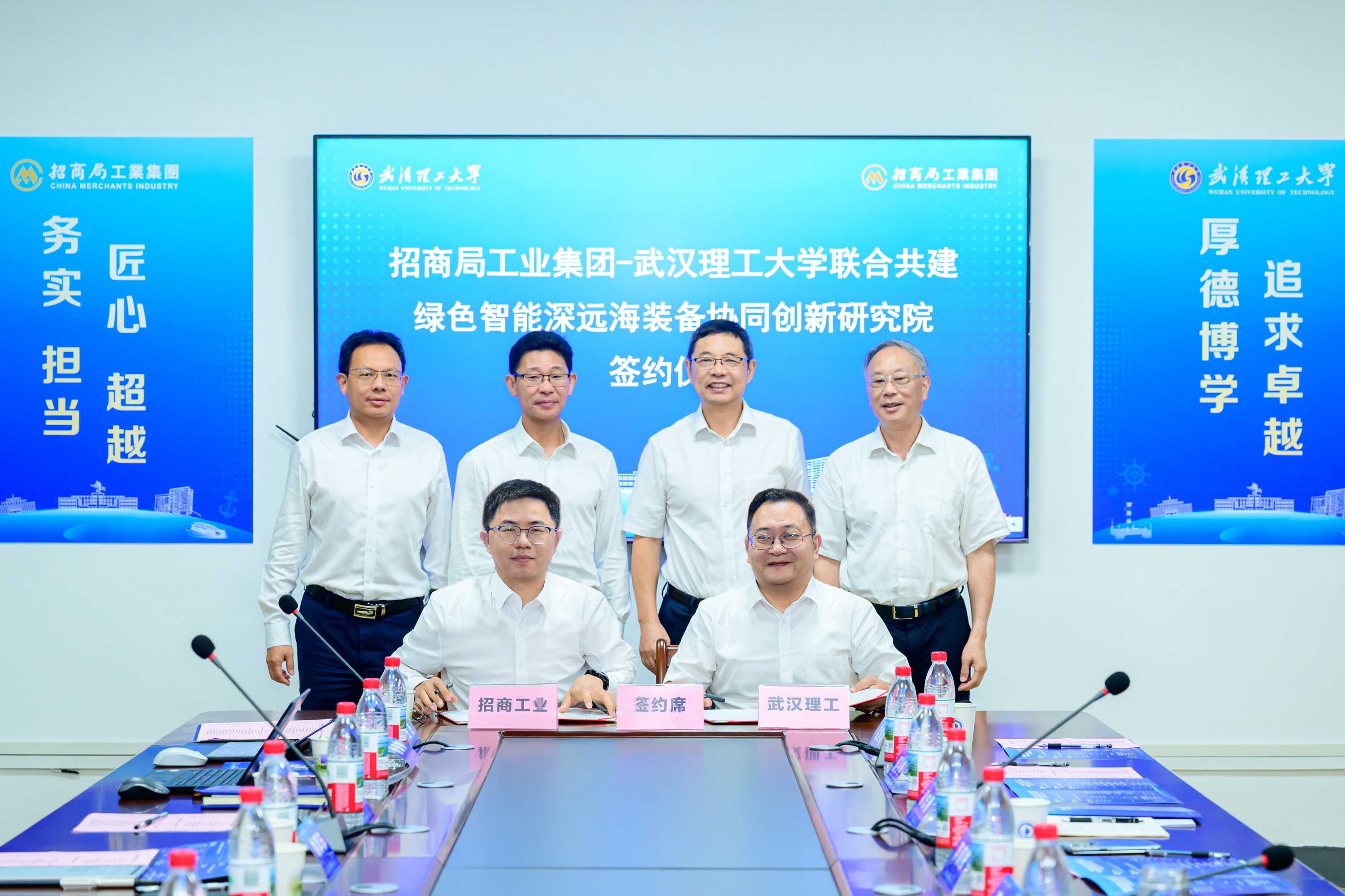 学校与招商局工业集团联合共建绿色智能深远海装备协同创新研究院签约暨揭牌仪式在余家头校区举行。招商局工业集团党委书记、董事长吴四川,党委副书记、总经理梅先志,校长杨宗凯、校党委副书记赵经、中国工程院院士严新平、校务委员会副主任刘祖源出席活动。
