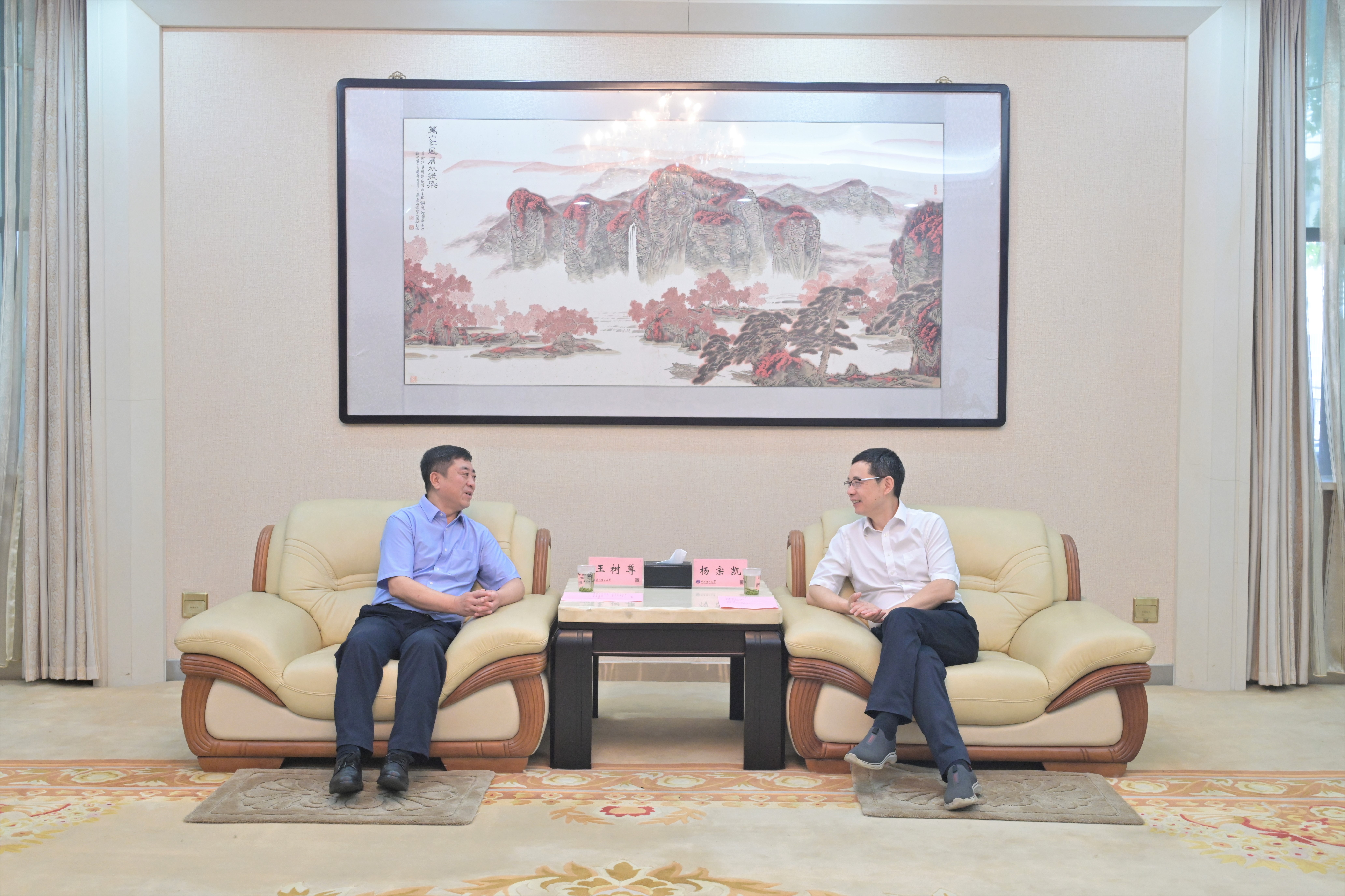 杨宗凯对王树尊一行来校调研表示欢迎,对江山重工研究院长期支持学校科学研究与学生就业表示感谢。他指出,学校与江山重工研究院需求互补,在材料研究上合作密切,未来学校将持续加强产教融合,加强人工智能与产业结合,希望双方在项目合作、人才培养等方面建立长久联系,与国家战略对接,建设联合实验室,共同培养国家卓越工程师。