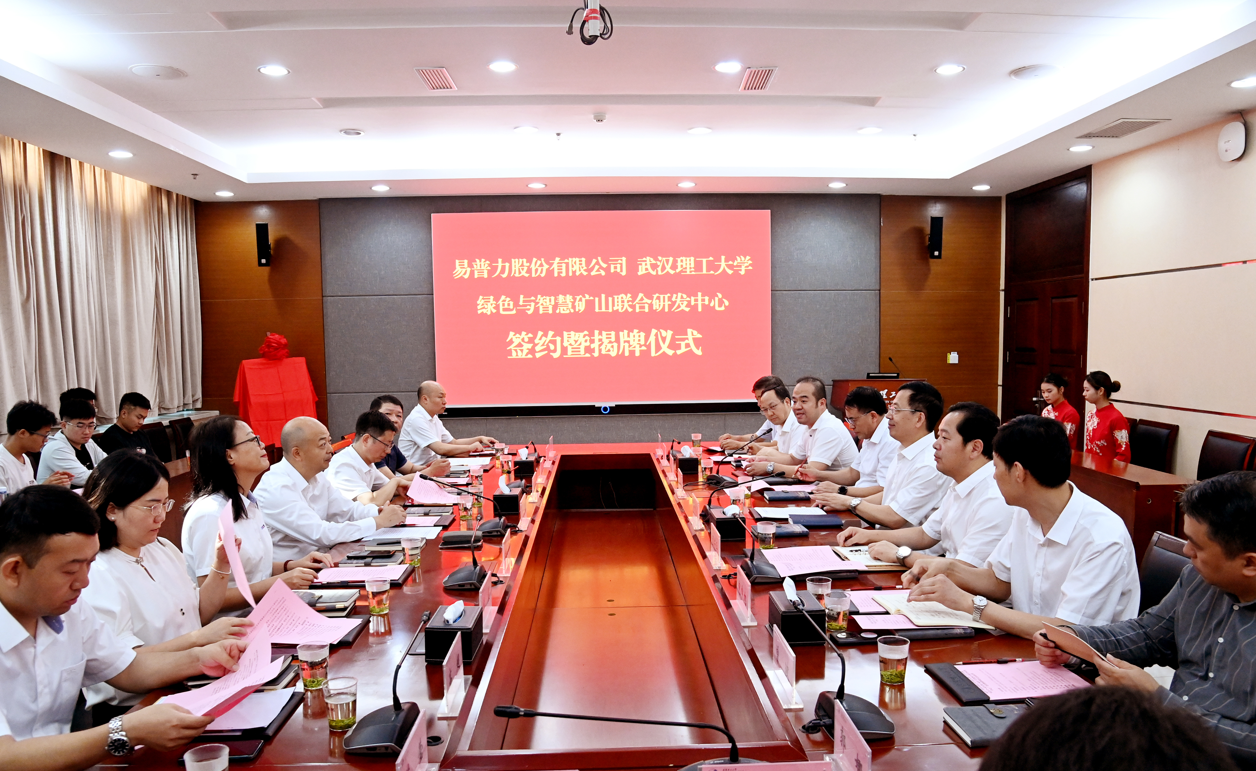 学校与易普力股份有限公司共建“易普力-武汉理工绿色与智慧矿山联合研发中心”签约暨揭牌仪式在学校举行,“武汉理工大学-易普力公司人才联合培养基地”同步揭牌。易普力公司党委书记、董事长付军,党委副书记、纪委书记刘小钧,校党委书记信思金、党委副书记孟芳兵出席活动。
