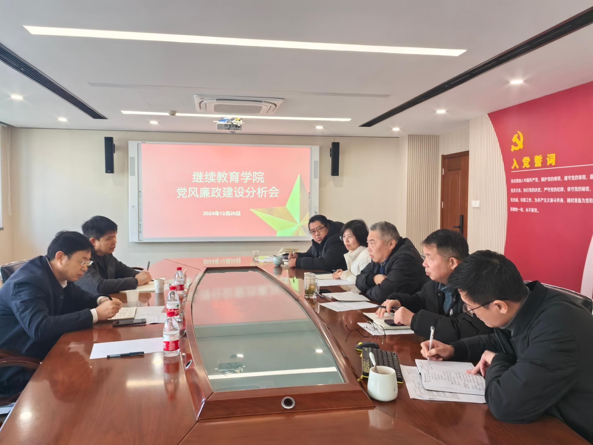 为进一步加强党风廉政建设,持续推进全面从严治党纵深发展,继续教育学院12月26日在弘德楼401会议室召开2024年度党风廉政建设分析会,校党委委员、副校长王新庆和校纪委副书记、纪监室(巡察办)主任冯爱明到会指导,学院领导班子全体成员参加会议,会议由党总支书记巢岺主持。