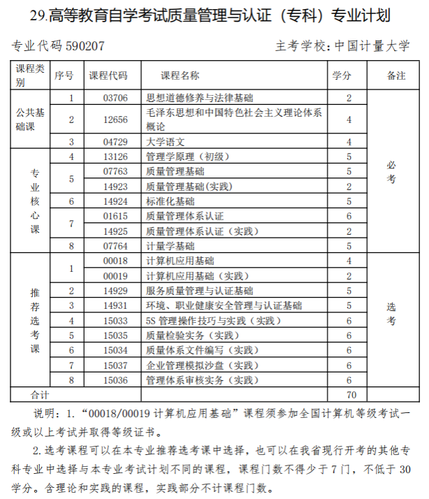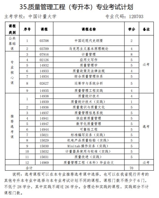 质量管理工程(专升本)、质量管理与认证(专科)专业考试计划