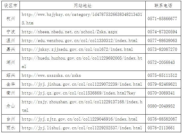 5.请考生务必关注报考地所属设区市教育考试机构网站,及时了解相关信息。各设区市教育考试机构网站地址及联系电话如下: