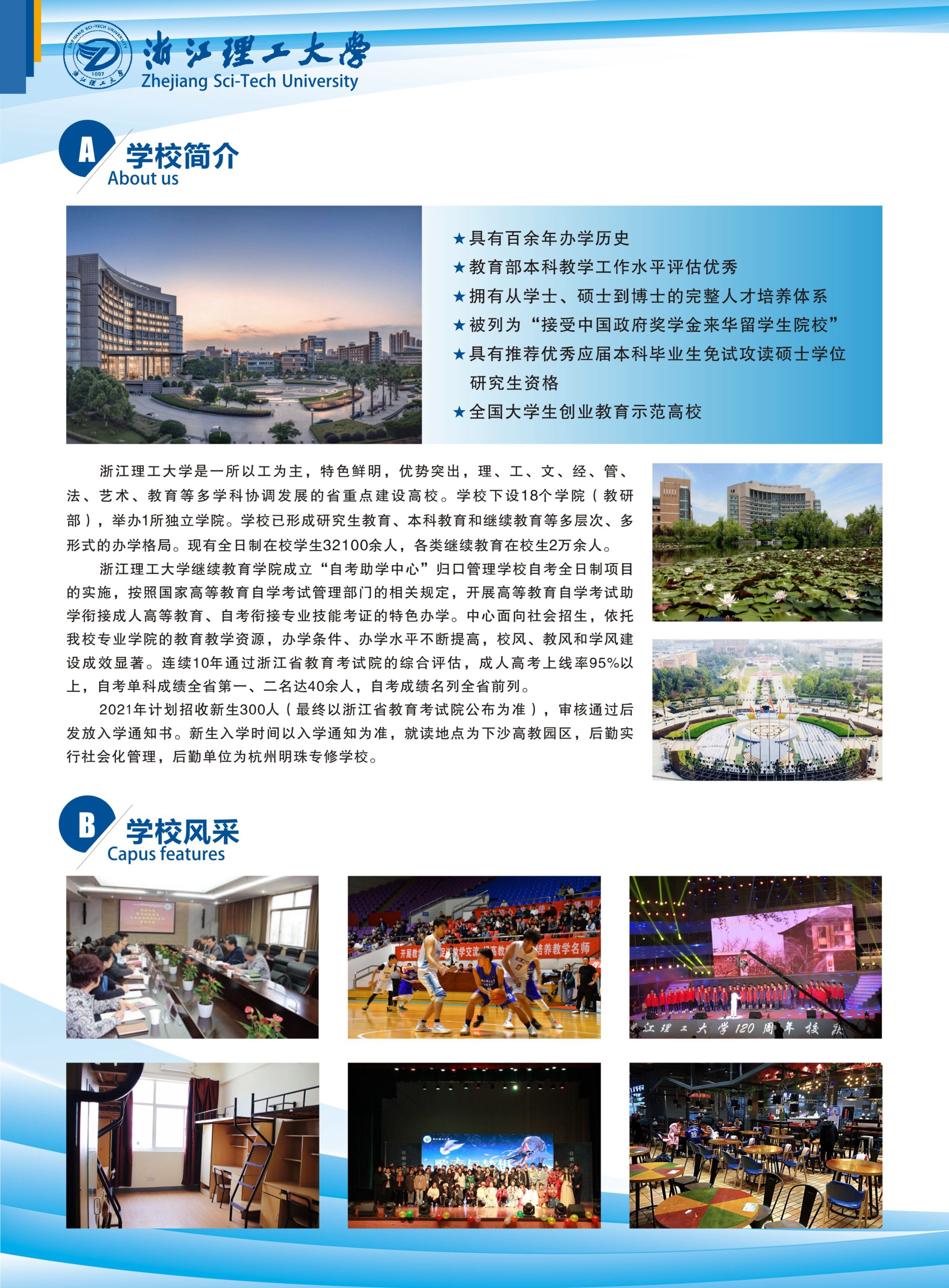 > 浙江理工大学2021年高等教育自考全日制助学招生简章