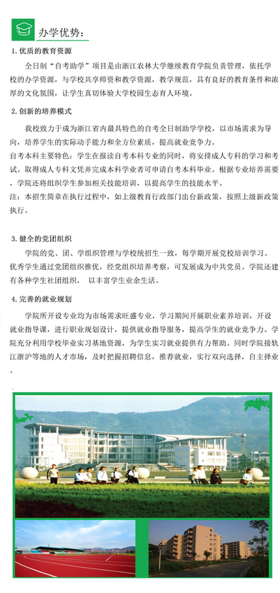 浙江农林大学继续教育学院2022年全日制自考助学项目简介