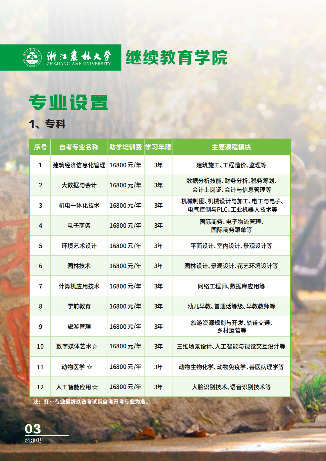 > 浙江农林大学继续教育学院2025年高等教育自考全日制助学项目简介