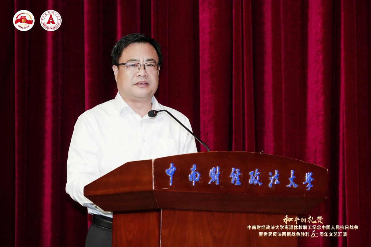 新闻网讯(通讯员 王悦心 摄影 彭佳 程勇)为纪念中国人民抗日战争暨世界反法西斯战争胜利80周年,9月29日,“和平的礼赞”中南财经政法大学离退休教职工文艺汇演在南湖会堂成功举办。校党委书记侯振发出席活动并致辞,校党委副书记陈狮,校老年人协会会长徐敦楷,部分职能部门、学院负责人、校老年人协会全体理事参加。