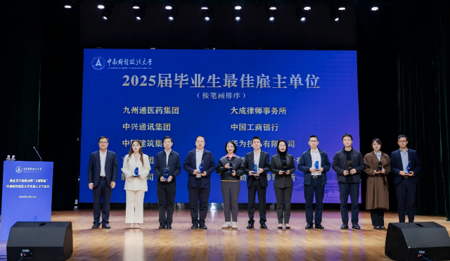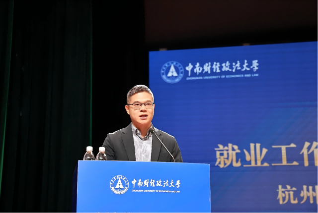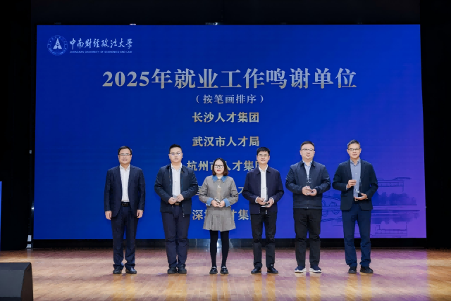 学校2025年就业工作鸣谢单位获奖代表、杭州市人才集团有限公司党委副书记、副董事长、总经理田佰辰讲到,一直以来,用人单位对中南财经政法大学毕业生满意度始终保持高水平,越来越多中南大优秀学子在中华大地乃至全球各地建功立业,在此欢迎广大中南大学子到杭州促交流、享生活、谋发展,杭州市人才集团也将携手中南财经政法大学,共同迈上校企合作新台阶。