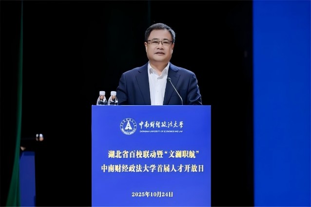 新闻网讯(通讯员 岳洋 张晶)10月24日,湖北省百校联动暨“文澜职航”中南财经政法大学首届人才开放日在南湖校区成功举办。湖北省政府教育督导室副主任督学王文森,湖北省教育厅高校学生处处长姜永生,中南财经政法大学党委书记侯振发,校长、党委副书记朱方伟,校党委副书记陈狮和200余家用人单位参加开放日活动。开幕式由校党委副书记陈狮主持。