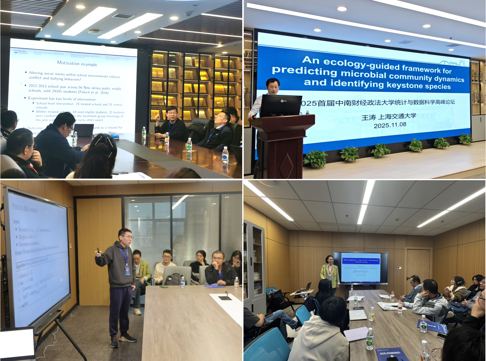 新闻网讯(通讯员 吴志伟 宋琪琪)11月7日—9日,首届中南财经政法大学统计与数据科学高峰论坛在武汉成功举行。本届高峰论坛在学校科学研究部指导支持下,由中南财经政法大学统计与数学学院主办,校科学技术协会、大数据研究院协办,汇聚了来自清华大学、北京大学、香港中文大学等36所高校近百名国内外知名专家学者,围绕统计与数据科学前沿研究、人才培养、学科建设等议题展开深入研讨。开幕式由中南财经政法大学统计与数学学院党委书记梁娜主持。