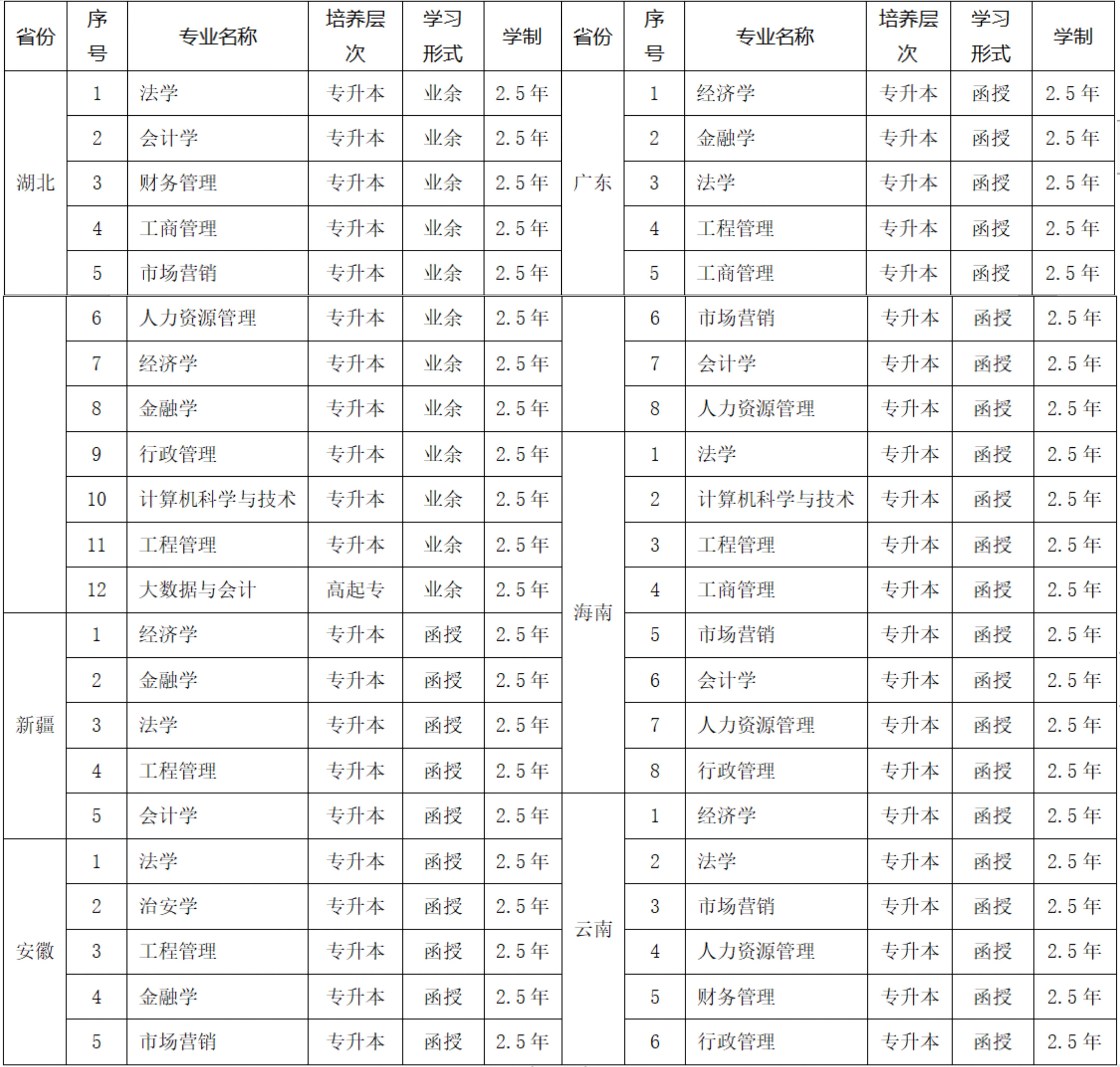 中南财经政法大学2023年高等学历继续教育招生简章
