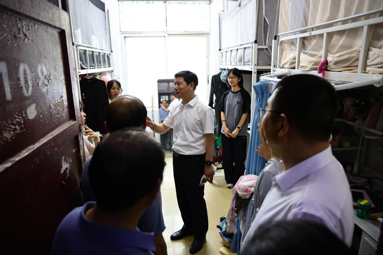 朱方伟一行先后走访41号楼、26号楼、54号楼、39号楼、33号楼、36号楼,对宿舍楼周边环境、公共配套设施进行全面排查。在寝室内部,他与学生亲切交流,详细询问学习生活需求,并现场回应学生关切。调研中,继续教育学院学子对住宿条件给予积极评价,尤其对学校“以学生为中心”的服务理念高度认可,满意度达92%。朱方伟强调,学生宿舍是立德树人的重要阵地,继续教育学院需协同构建“全员参与、全域覆盖”的育人格局。