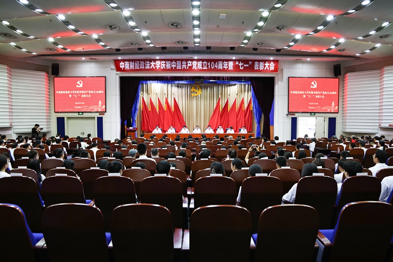 为热烈庆祝中国共产党成立104周年,表彰先进、弘扬正气,激励全校各级党组织和广大党员踔厉奋发、勇毅前行,6月30日下午,中南财经政法大学隆重举行庆祝中国共产党成立104周年暨“七一”表彰大会。全体在校校领导,党委常委、校长助理出席大会。包括中南财经政法大学继续教育学院代表在内的全校各二级单位负责人、获奖代表、党员师生代表等齐聚一堂,共同见证这一庄严时刻。